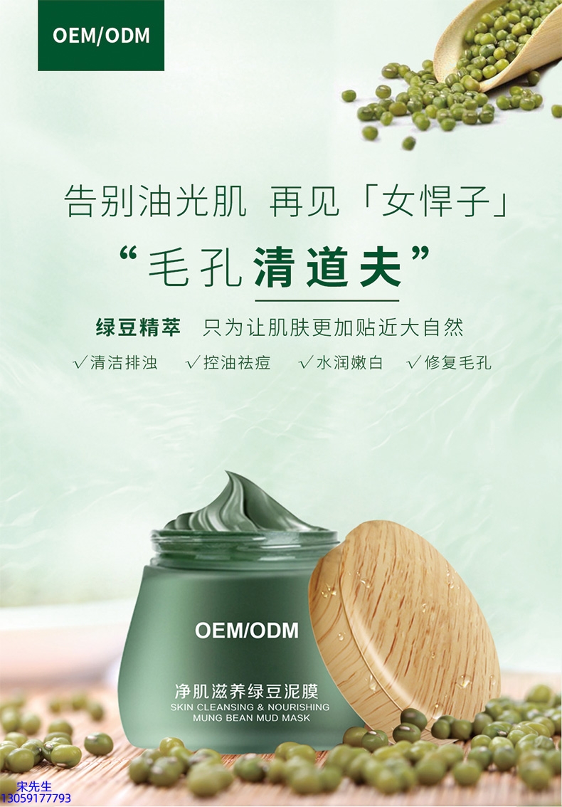 阳江市_泥膜深层清洁补水保湿绿豆泥膜 泥膜oem/OEM加工贴牌